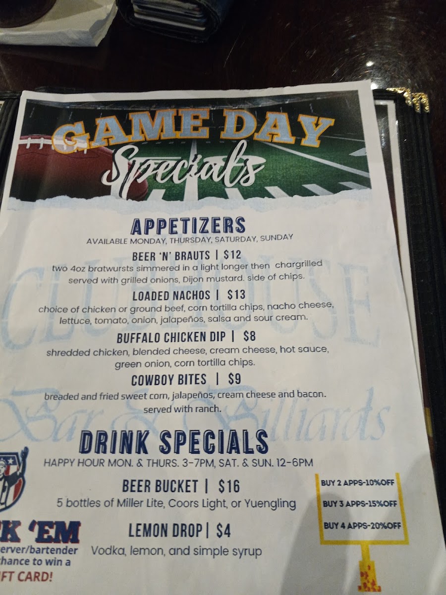 24-hr house marinated 8oz cut, grilled to order, chopped romaine, blue cheese crumbles, tomato, red onion, crispy potato flats